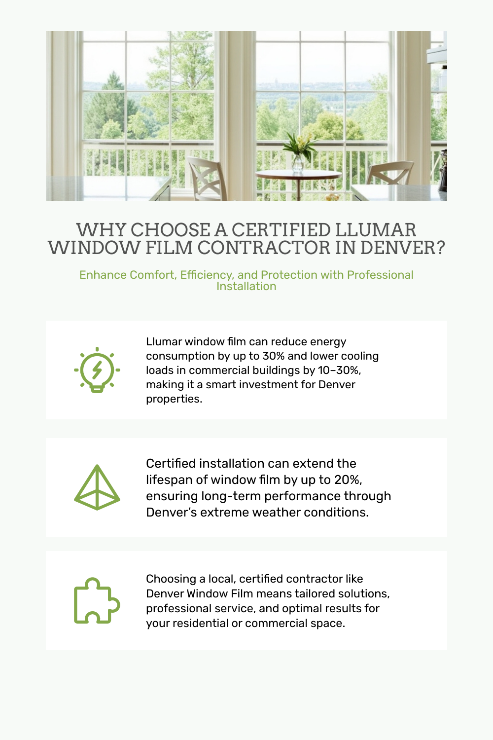 Welcome to Denver, where the dynamic climate and vibrant cityscape present unique challenges and opportunities for property owners. At Denver Window Film, we understand the importance of selecting a certified Llumar window film contractor to maximize the benefits of window film installation. Let us guide you through the process to ensure you make the right choice for your home or business.